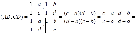 Сложное отношение точек не изменится, если поменять местами пару точек: